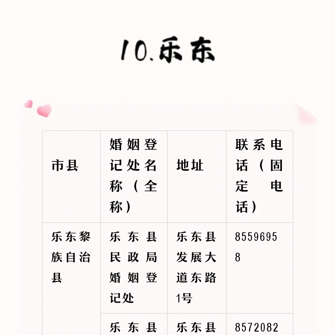 各地婚姻登记处的联系方式