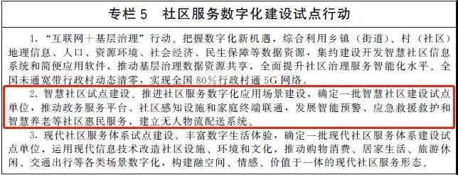 开发社区协商议事、政务服务办理、养老、家政、卫生、托育等网上服务项目应用,推动社区物业设备设施、安防等智能化改造升级。