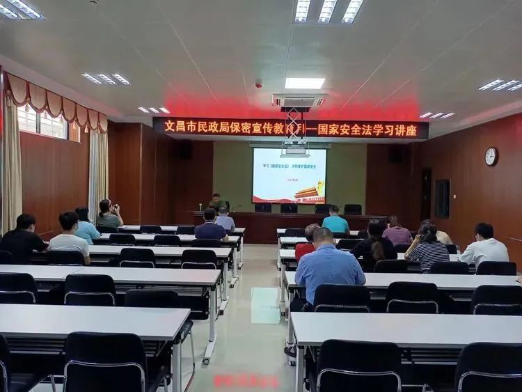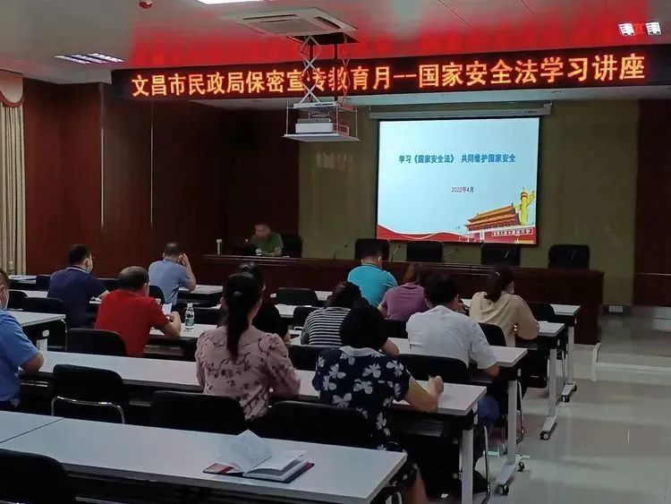 4月15日下午,文昌市民政局在文汇集中办公区109会议室,召开国家安全法学习讲座,市民政局邢定海副局长进行授课,局全体干部及下属单位负责人参加。