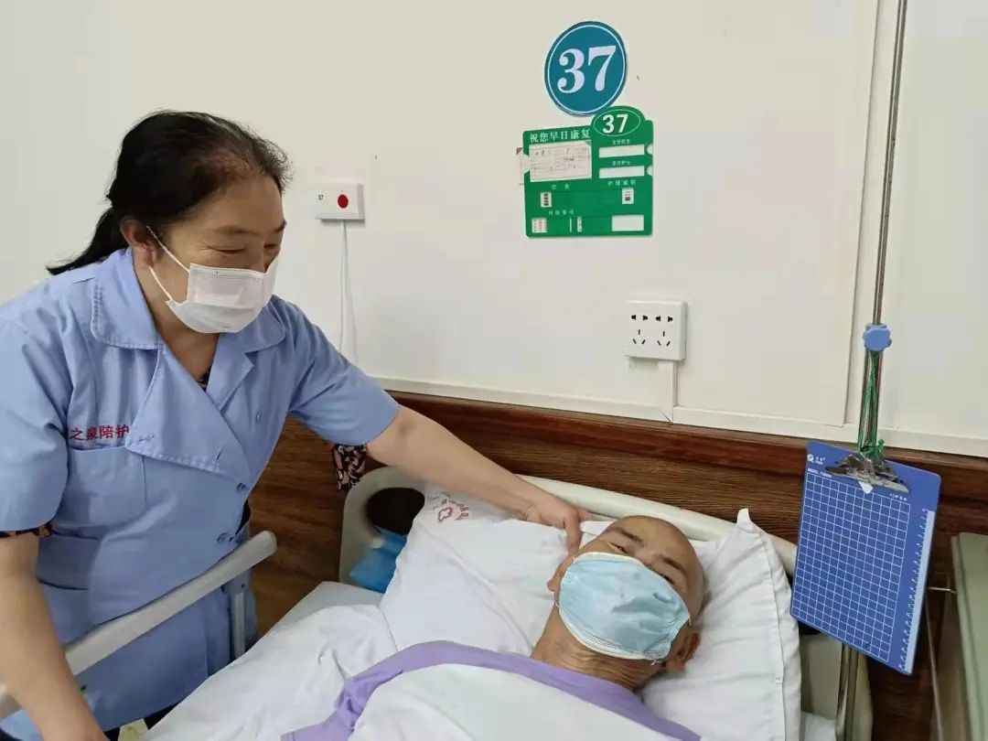 2022年5月,海南爱之泉家政服务有限公司护理人员在文昌市中医院为文城镇特困人员提供住院照料护理服务。