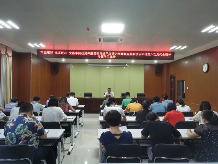 为深入学习贯彻习近平总书记考察海南重要讲话和省第八次党代会精神,进一步筑牢民政干部思想根基,6月15日上午,市民政局开展习近平总书记考察海南重要讲话和省第八次党代会精神专题学习课堂,市民政局党组书记、局长符青山授课,局全体干部职工及下属单位负责人参加。