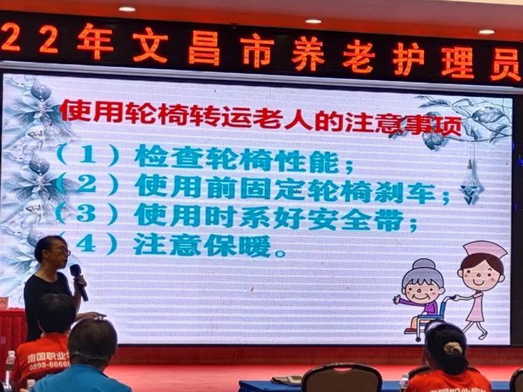 为切实加强养老服务人才队伍建设,全面提升养老护理员的职业素养、专业水平和服务质量,6月27日至7月2日,文昌市民政局组织举办2022年养老护理员培训班,全市289名从事老年人生活照料、护理服务的人员,包括公办和公建民营养老机构专兼职护理人员、护理机构从业人员、分散供养特困人员照护人员参加培训。培训班为期6天,共60个学时。