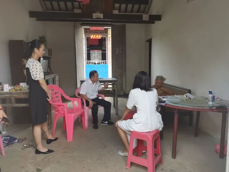 ▲7月22日,市民政局邓德雄副局长带队到铺前镇铺前村委会了解突发困难户家庭情况