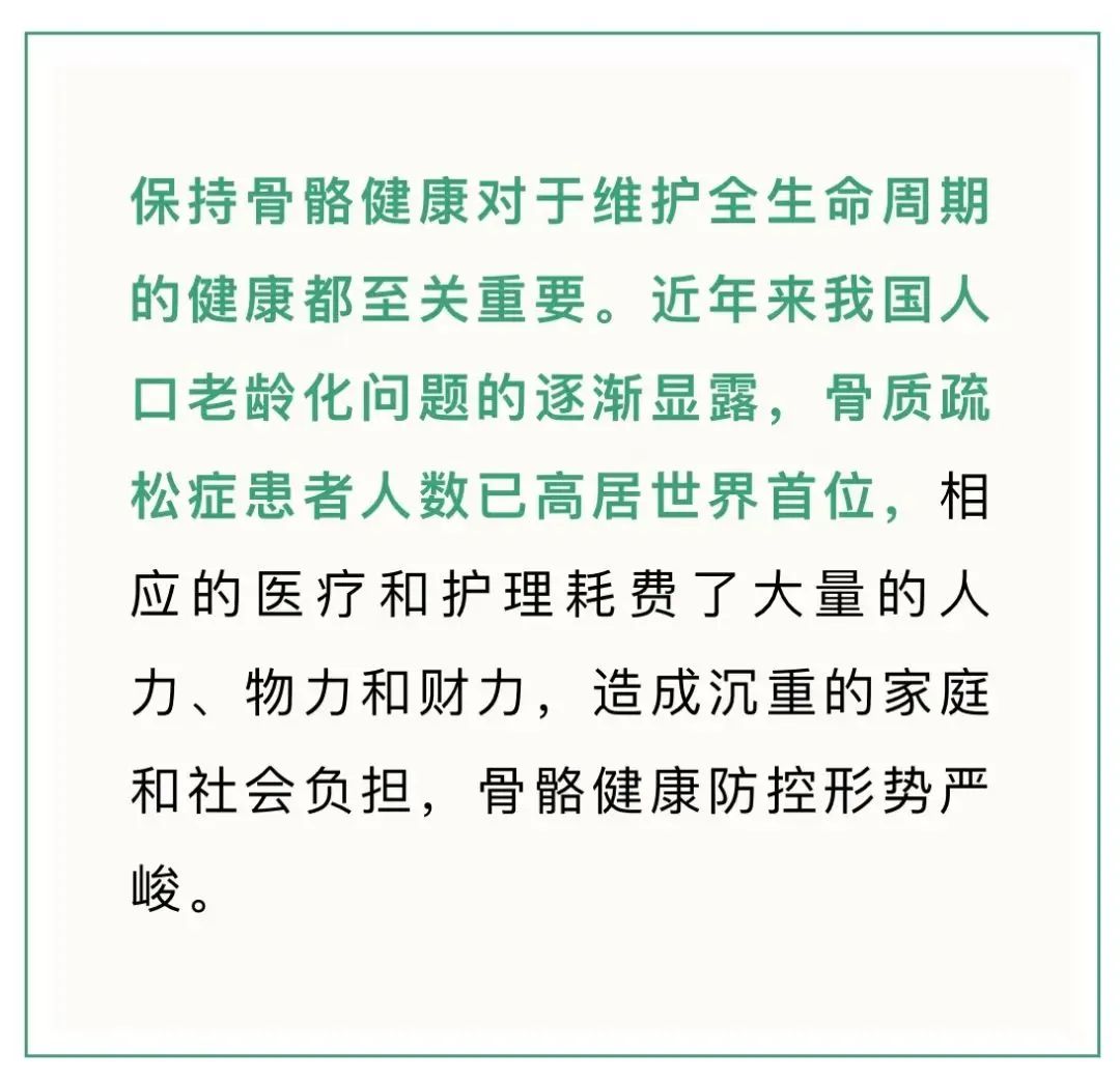 健康骨骼对于保证我们自身健康和生活质量具有重要意义,希望大家从我做起,从现在做起,践行健康的生活方式,筑牢健康骨骼的根基!