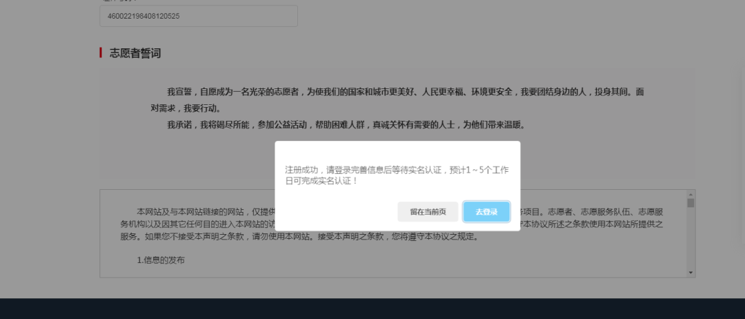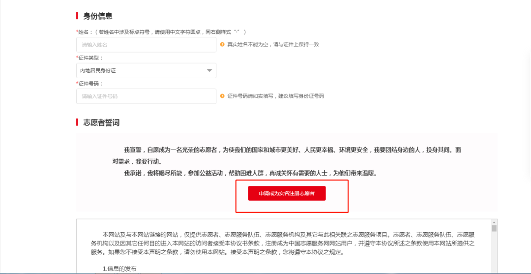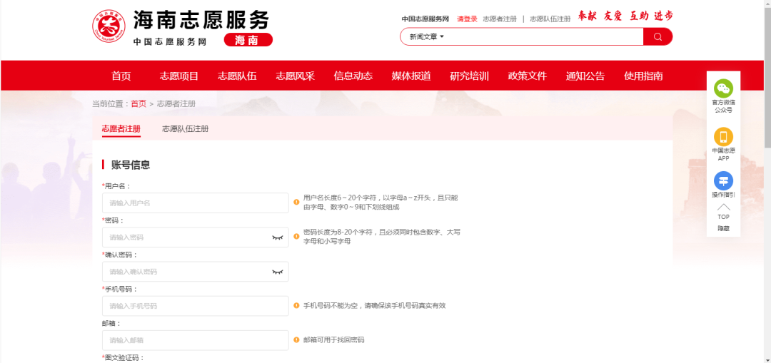 第三步:在首页点击“志愿者注册”并填入账号信息