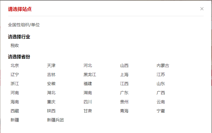 第二步:点击“站点切换”—点击“请选择省份”(海南)