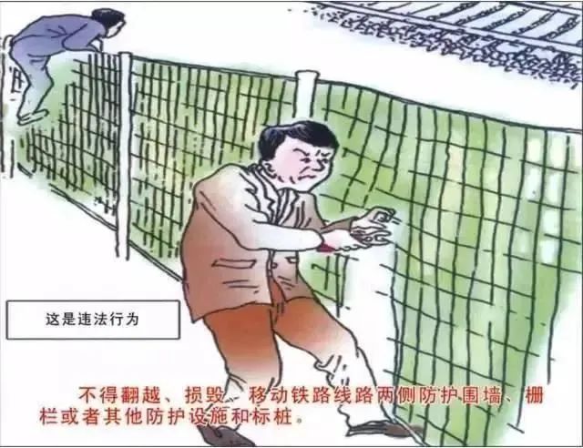 9.不得翻越、损毁、移动铁路线路两侧防护围墙、栅栏或其他防护设施和标桩。