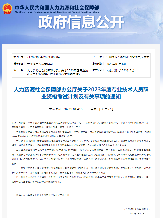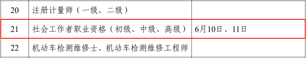 近日,人力资源和社会保障部办公厅印发《关于2023年度专业技术人员职业资格考试计划及有关事项的通知》,2023年社会工作者职业资格(初级、中级、高级)考试时间定为6月10日、11日。