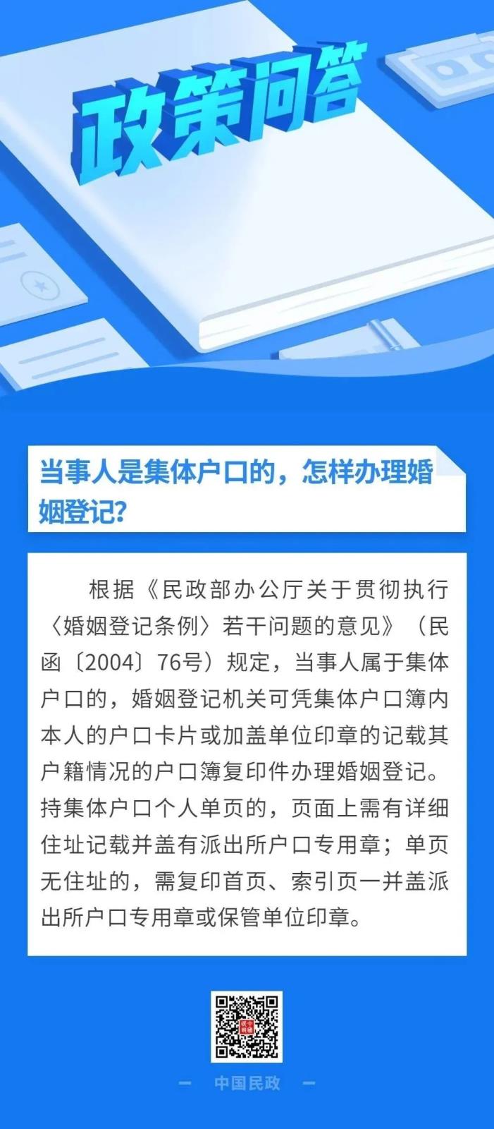 政策问答|当事人是集体户口的,怎样办理婚姻登记?