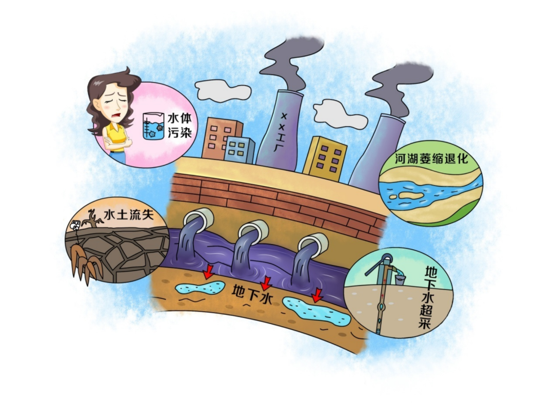 值得注意的是这些环境问题往往相互交叉、互为因果,如河湖萎缩退化会降低水体自净能力,加重水体污染;地表水体污染会促使地下水超采和污染;水土流失也会导致水体污染等。