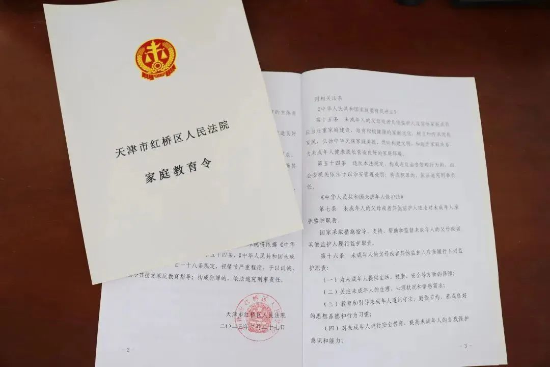 红桥法院制发了一份《家庭教育令》