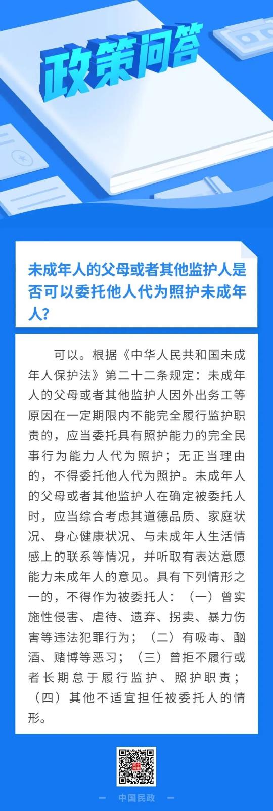 政策问答|未成年人的父母或者其他监护人是否可以委托他人代为照护未成年人?