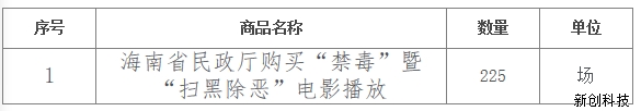 海南省民政厅购买“禁毒”暨“扫黑除恶”电影播放采购公告